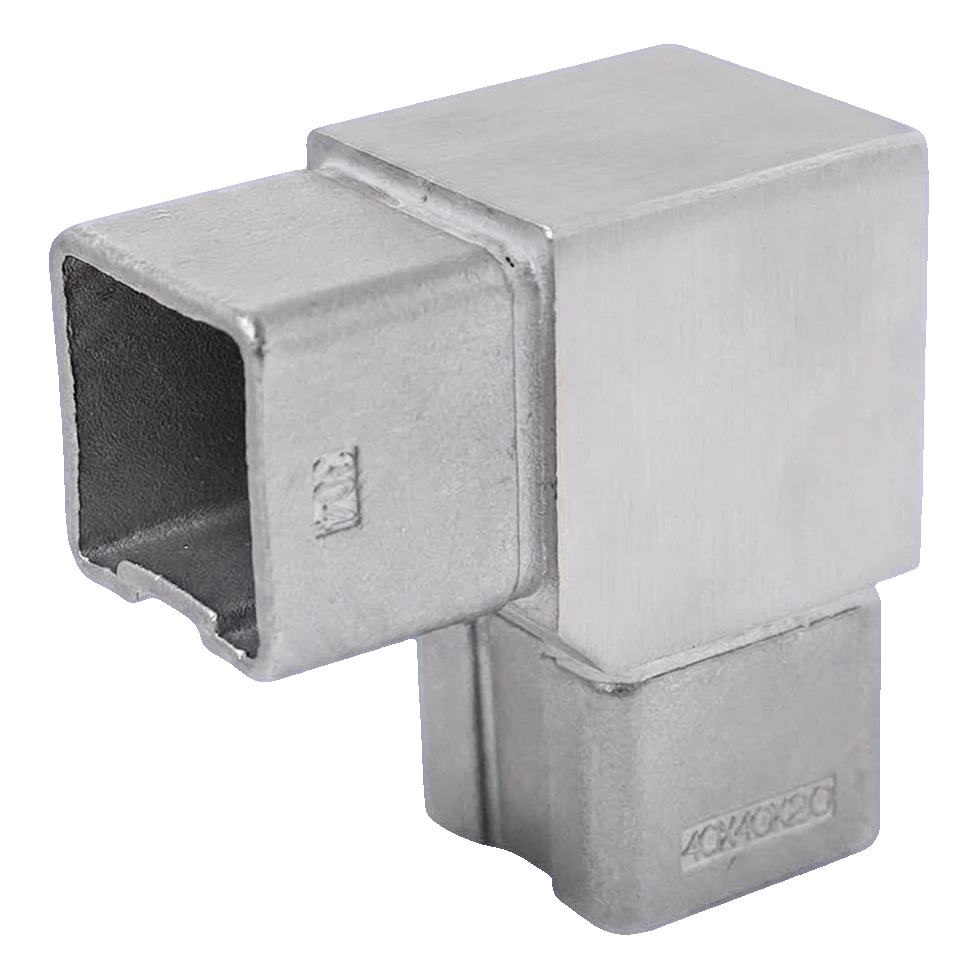 90° Elbow for 40x40 mm Balustrade Profile – AISI304 Stainless Steel, Satin Finish