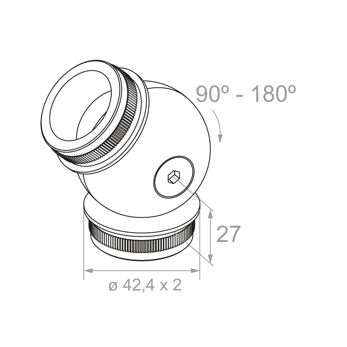 Adjustable ball joint connector 90°–180° for tube ø 42.4 mm – AISI 304 stainless steel satin
