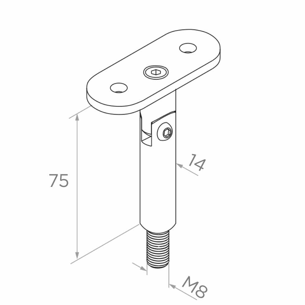 Adjustable handrail support rod fi 14×75 mm with flat plate – AISI 304 satin, M8 thread