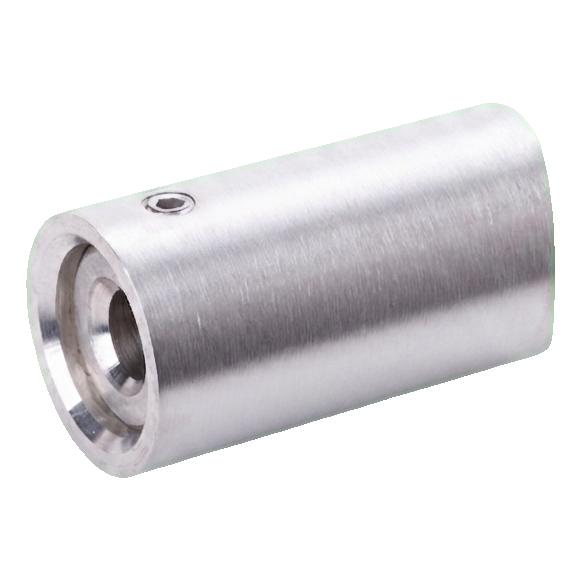 Axial bracket for Ø 25 mm rod designed for mounting handholds with diameter Ø 42.4 mm. Component designed with professional stainless steel balustrade and handrail constructions in mind — provides rigid, axial connection of the handhold to the wall. Thanks to its compact construction and satin finish, the bracket discretely complements balustrade systems whilst maintaining a consistent, elegant appearance of the entire construction.