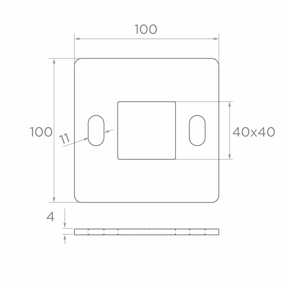 - Base dimensions: 100 × 100 mm