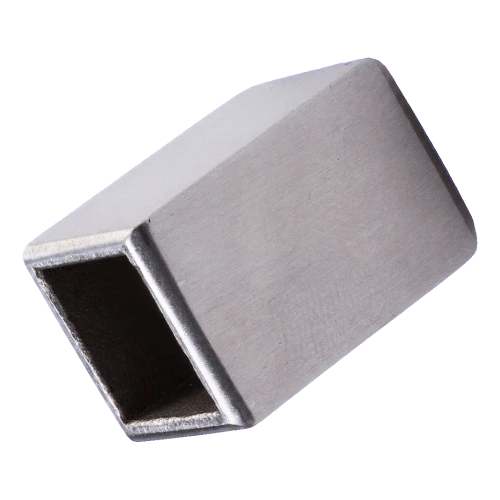 The end cap is designed for finishing vertical and horizontal rods in stainless steel balustrades. It finds application in balcony, terrace and stair balustrades — anywhere aesthetic covering of the open end of a square profile is necessary. It serves a dual function: decorative — gives the balustrade a cohesive, refined appearance — and protective — prevents water from entering the interior of the rod and protects against internal corrosion.