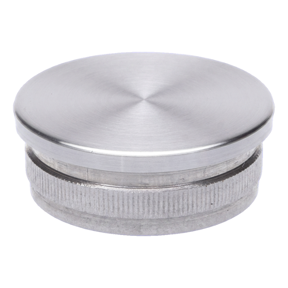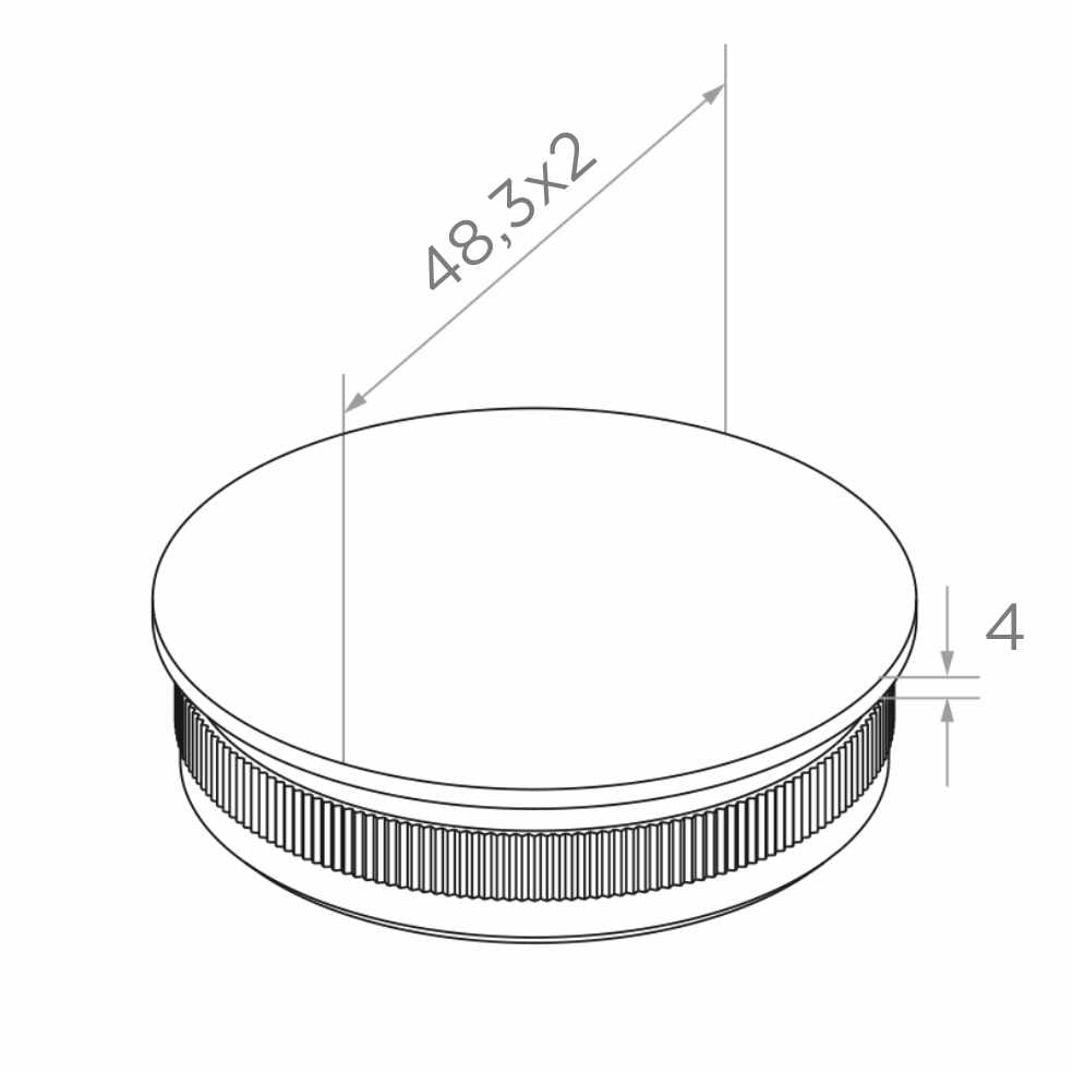 The end cap is installed by pushing the knurled fitting section into the tube interior. Knurling ensures permanent and secure fitting without the possibility of accidental displacement. The element is dedicated to balustrade systems based on Ø 48.3 mm tubes — one of the most commonly used standards in stainless steel balustrades. It is ideal as a finish for top handrails, vertical posts and other structural elements of internal and external balustrades.