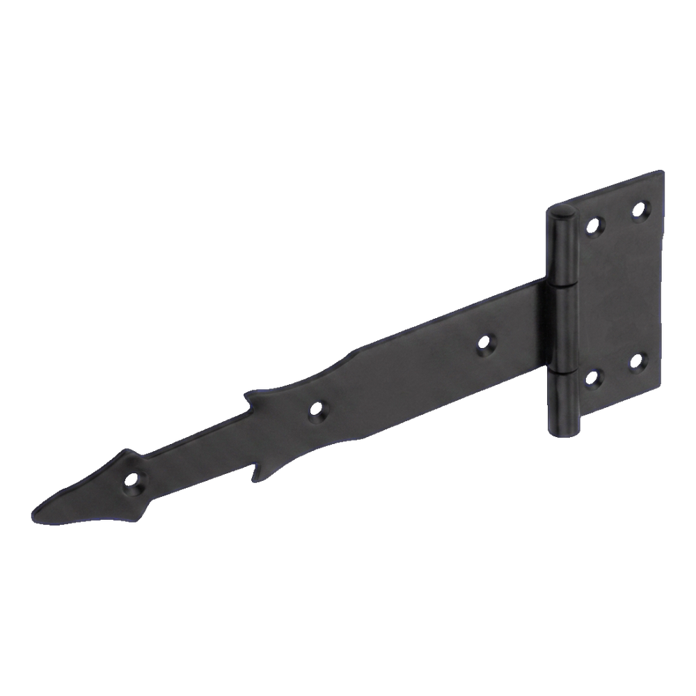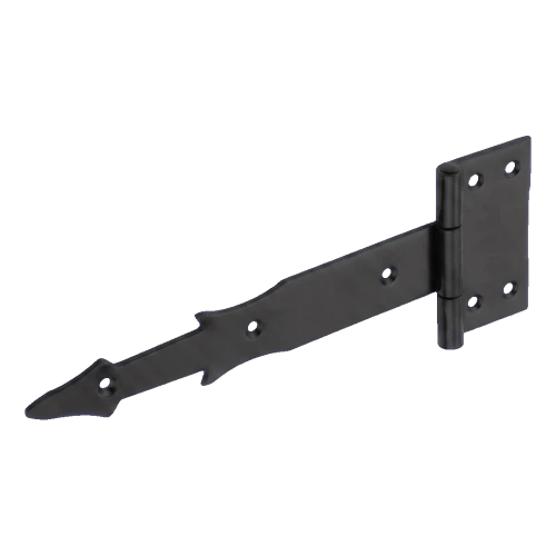 Gazebo hinge 250 mm in black is a durable hardware element designed for mounting doors, gates, garden barriers and gazebos. The decorative spear-shaped arm ending gives the hinge a decorative character, making it perfectly complement wooden and metal fencing and garden constructions.