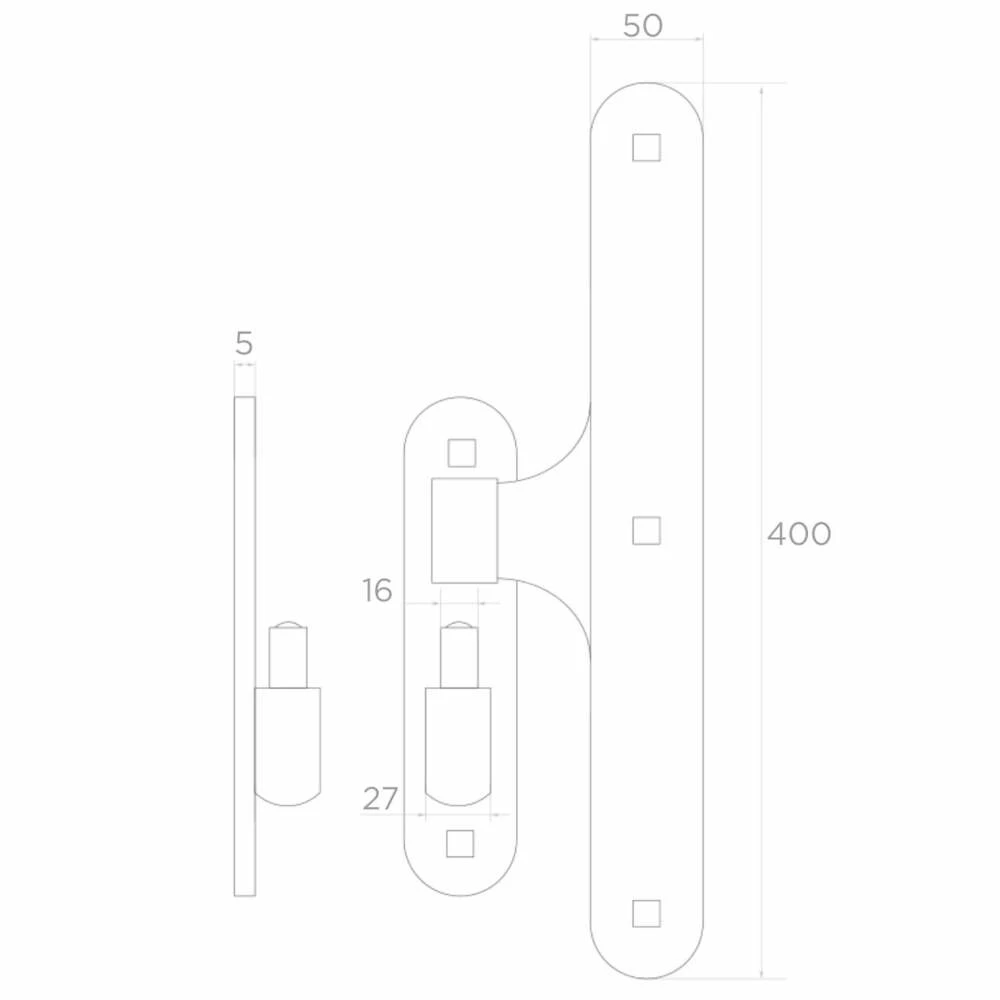 The centre hinge is mounted on the central suspension of the gate leaf, ensuring even load distribution. Square mounting holes allow the use of cup head bolts, which do not protrude above the plate surface and prevent unauthorised unscrewing from the external side. This is a practical solution that enhances both the aesthetics and security of the installation.