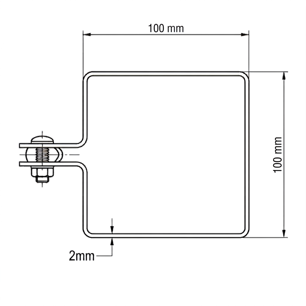 End clamp for fencing panels designed for mounting mesh and panels on posts with 100×100 mm cross-section. Complete mounting kit allows for quick and secure fence installation in both private and commercial investments — without the need to separately source bolts and spacers.