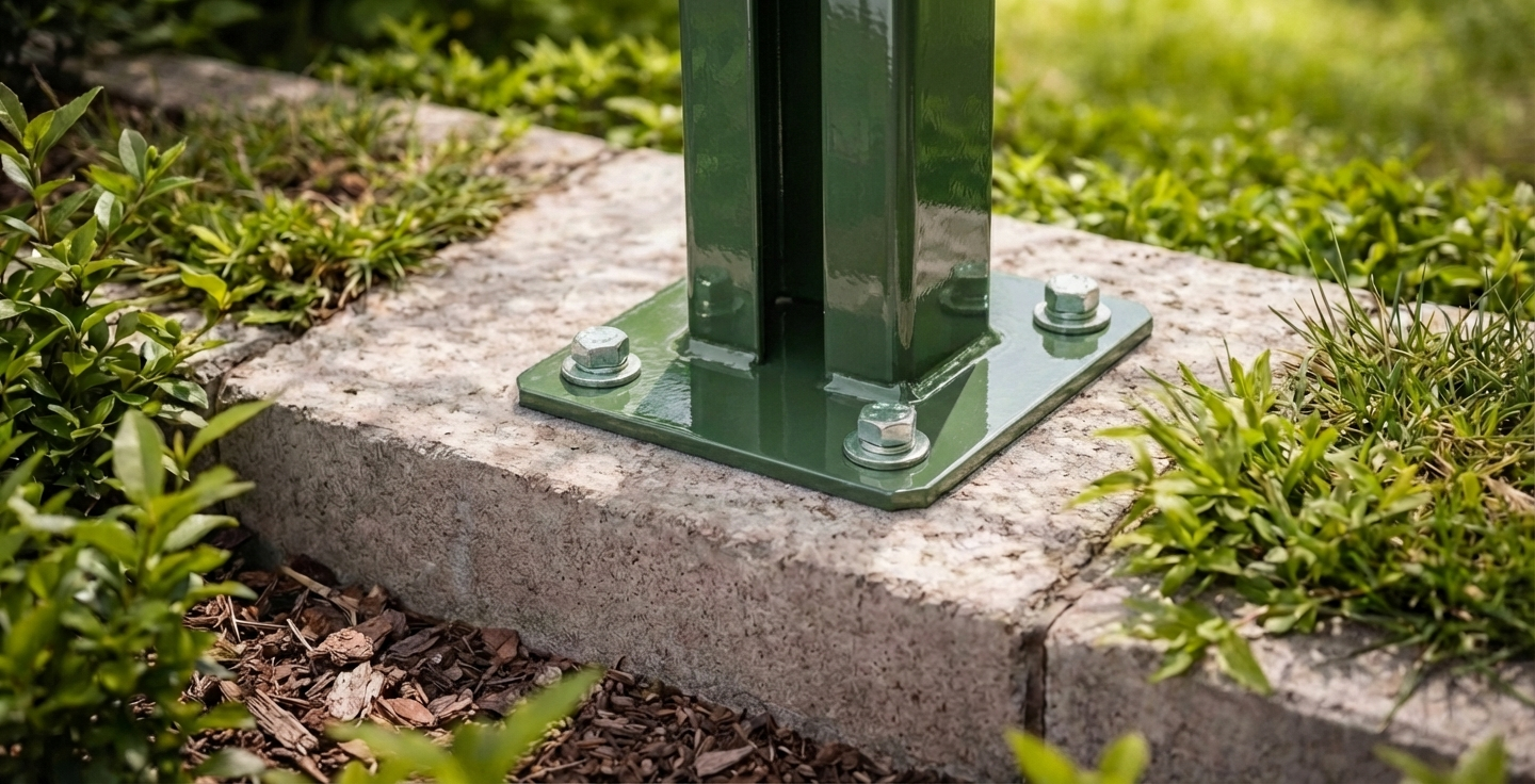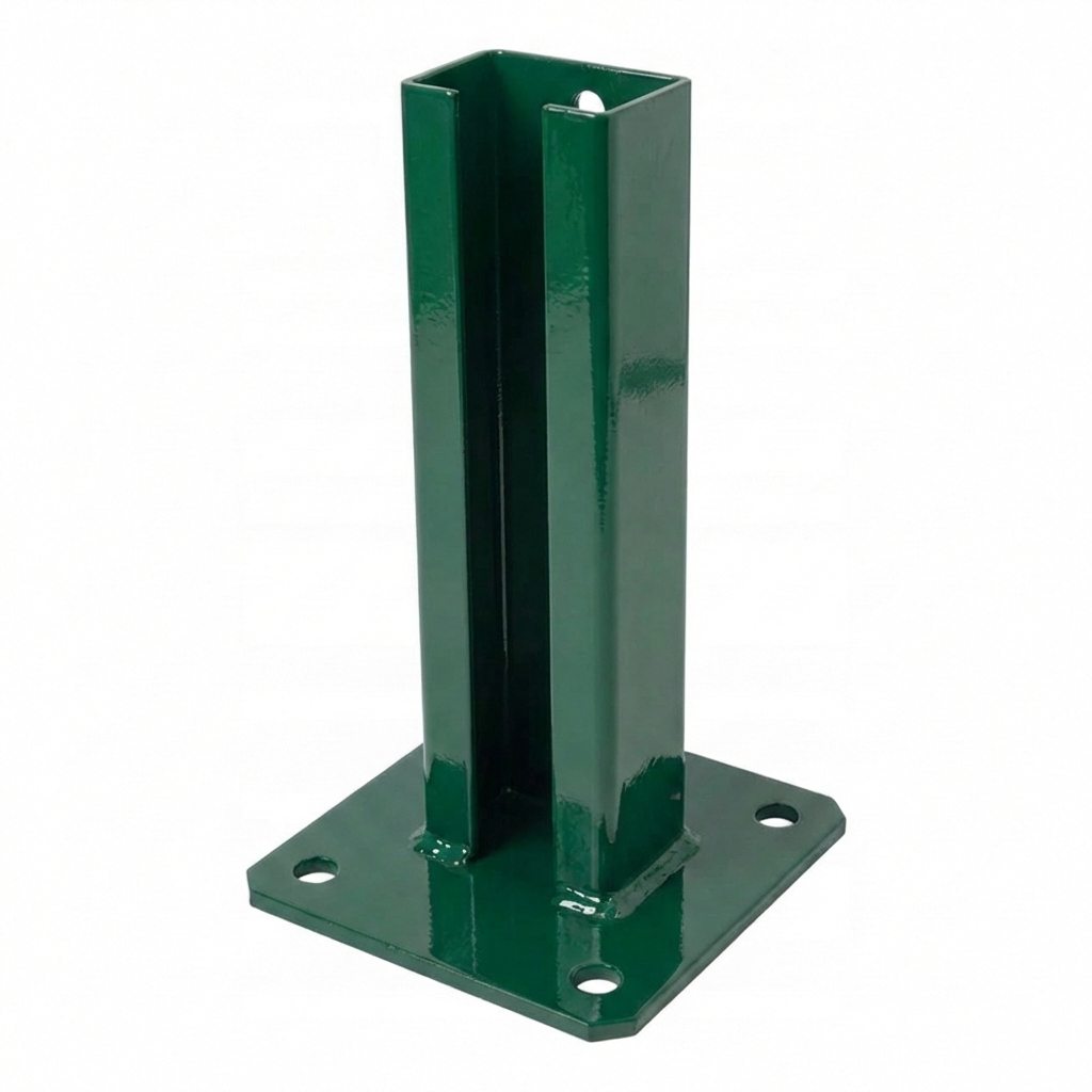 The base is compatible with standard fence posts with a 60×40 mm profile, used in most panel fencing systems. An ideal solution for installation companies carrying out fence mounting on ready-made foundations and concrete plinths outdoors — even in harsh weather conditions.