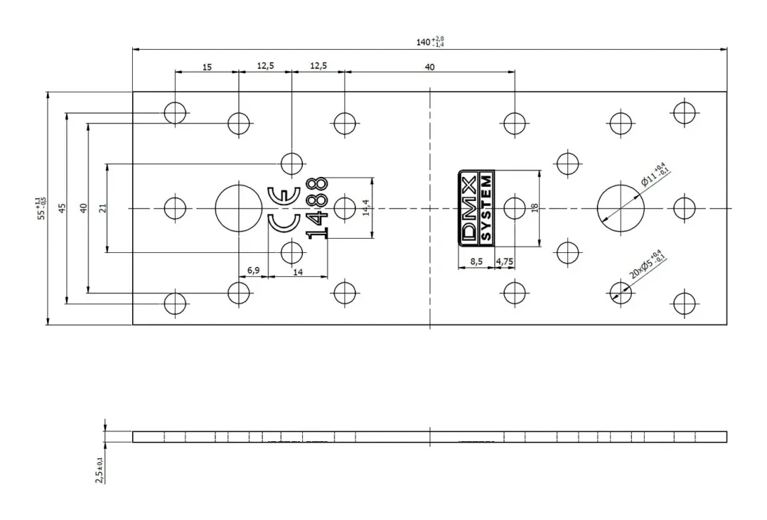 - Sheet thickness: 2.5 mm (tolerance ±0.1)