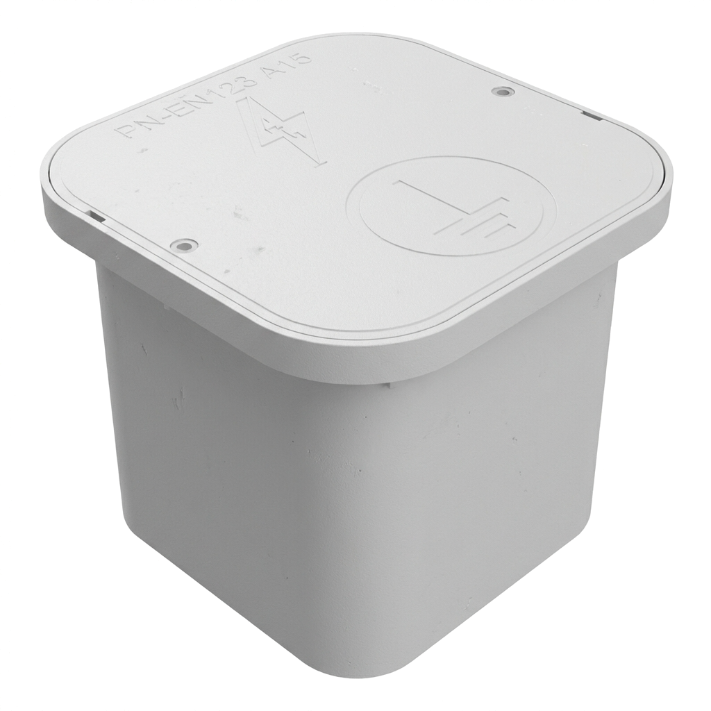 The box is made of durable plastic in grey colour. Thanks to its solid construction, it provides effective protection of inspection joints against moisture, contamination and mechanical damage. The cover with markings enables quick identification of the inspection point in the field.