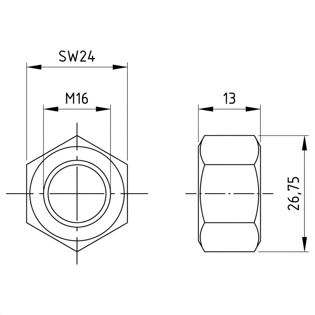 Compliance with DIN 934 standard means a standardised hexagonal shape that enables easy tightening using a standard wrench. The nut is reusable and fits all M16 metric bolts with right-hand thread.