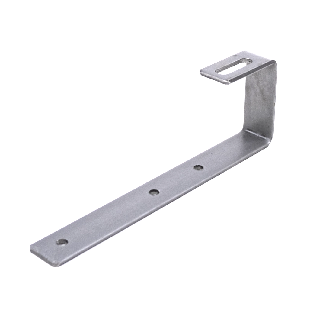 J Roof Hook for slate roofs made of stainless steel H17 1.4016, with dimensions 239x30x4mm and M10 hole for mounting rails in photovoltaic systems.