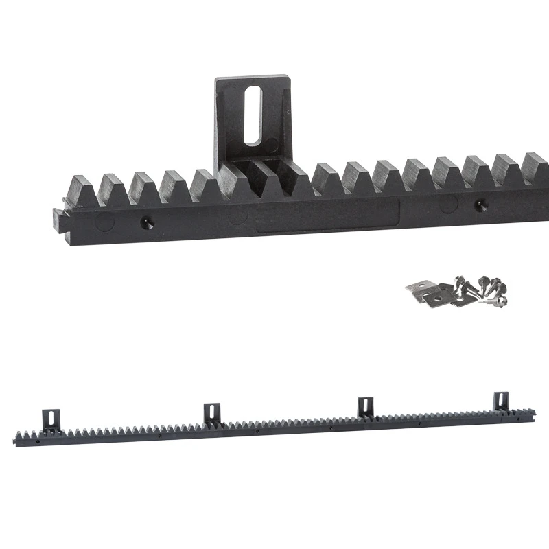 Why choose this? Plastic rack rails are an increasingly popular choice among sliding gate installers. Compared to steel racks, they offer significantly quieter operation, are resistant to corrosion, and require no lubrication. Thanks to the adjustable mounting brackets, installation is quick and requires no welding or drilling of additional holes.