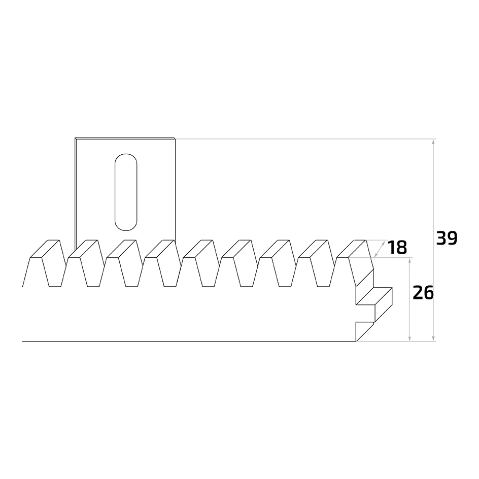 Plastic rack rail with a steel core designed for self-supporting sliding gate drives. A proven solution combining quiet operation with high durability — suitable for gates weighing up to 600 kg.