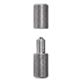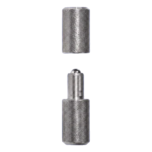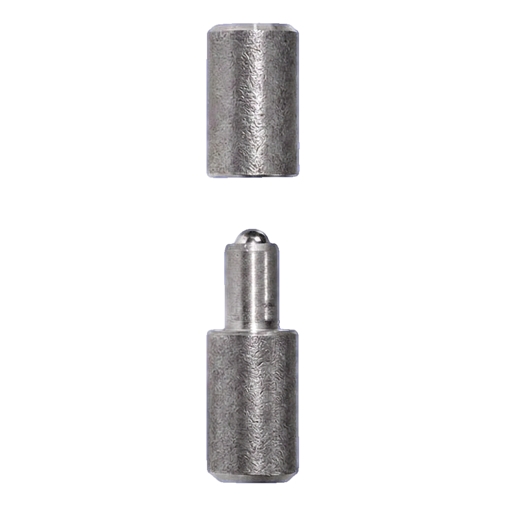 The hinge consists of two elements — the upper sleeve (socket) and the lower part with a pin terminated by a ball. This design allows for easy hanging and removal of the gate leaf without the need to dismantle the entire hinge, which significantly speeds up installation and service work.