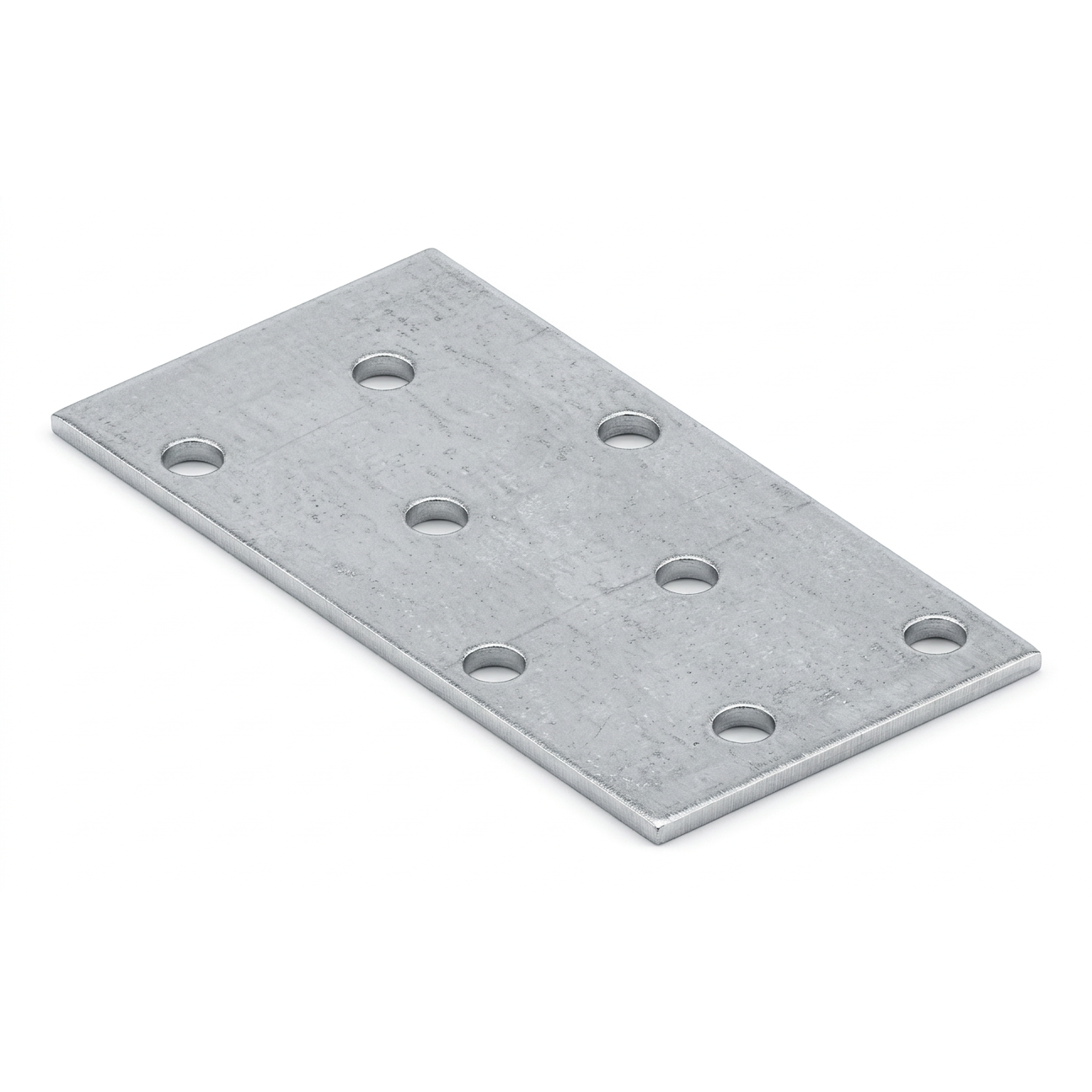 The flat connector is suitable wherever a strong, coplanar connection between timber or steel elements is required. The most common applications include the assembly of roof trusses, reinforcement of structural nodes, and joining beams and rafters. The 8 holes with a 5 mm diameter give the installer considerable flexibility in selecting the fastening pattern.