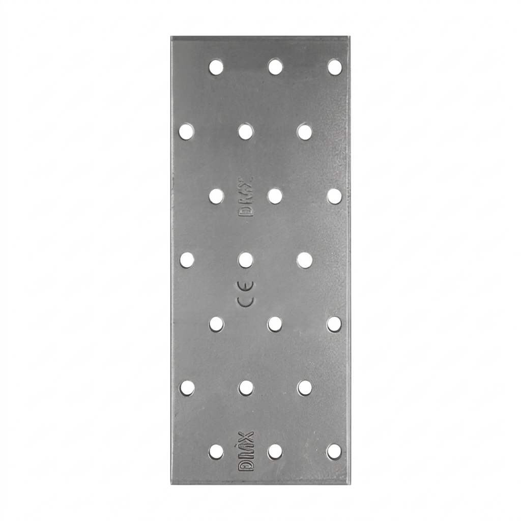 The 140×60 mm perforated plate is a versatile flat connector designed for structural joints where the side faces of the connected elements lie in the same plane. With 21 holes evenly distributed across the entire surface, the plate enables both simple and complex connections in timber structures.