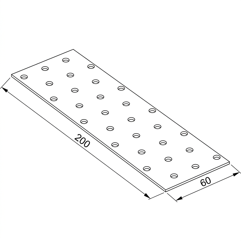 Perforated plate 60×200 mm is a heavy-duty timber connector designed for professional joining of timber elements in structural applications. Made from 2 mm steel sheet with a zinc coating, it provides excellent corrosion resistance and long-lasting durability even in demanding weather conditions.