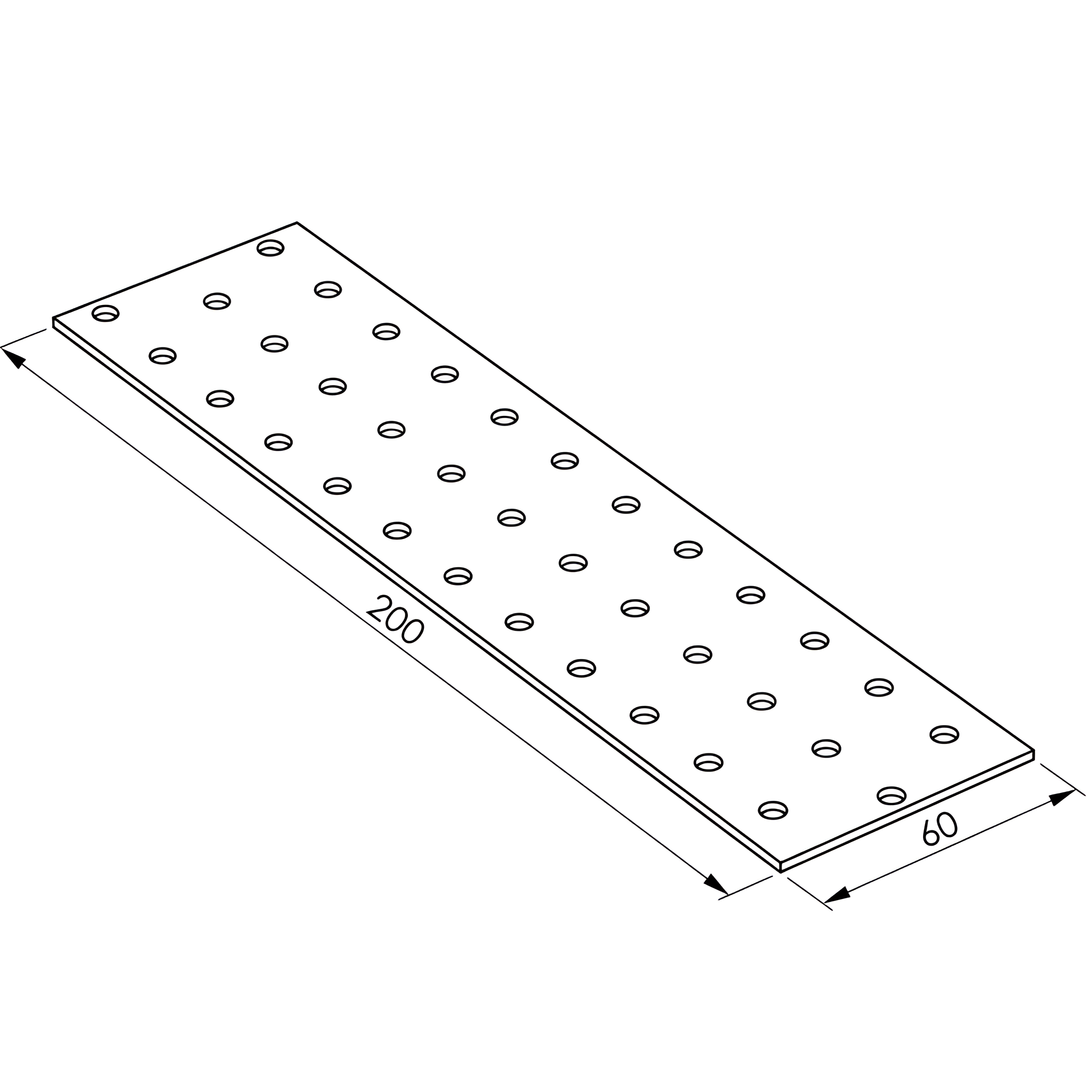 The perforated plate 60×240 mm is a versatile flat connector designed for joining timber elements that lie in the same plane. With 36 holes evenly distributed across the entire surface, the flat bar enables both simple and complex carpentry connections — including the installation of roof trusses.