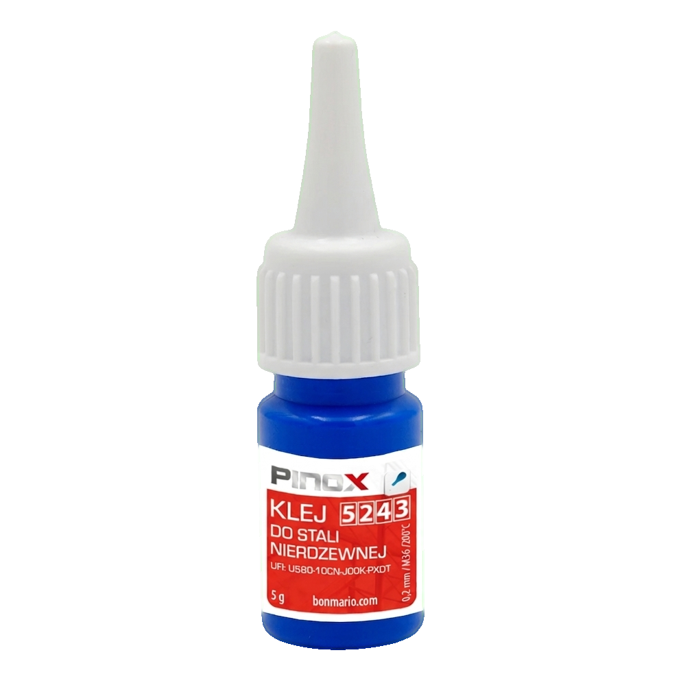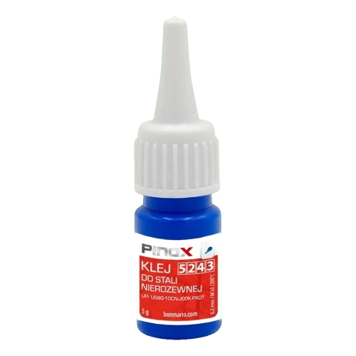 Pinox 5243 is a professional shaft-hub type anaerobic adhesive with a capacity of 5g, designed for permanent securing of threaded and press-fit connections of stainless steel components. It cures upon contact with metal in the absence of oxygen, guaranteeing reliable bonding in hard-to-reach places — e.g., when installing balustrades, brackets and structural elements made of stainless steel.