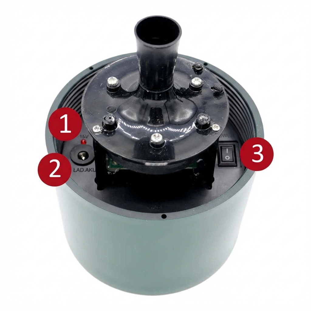 Importantly, the device changes the sound sequence every 5 minutes to a different pattern, preventing pests from becoming accustomed to a repetitive cycle. The built-in power amplifier transmits the signal through a 25 W horn speaker, generating maximum sound pressure of up to 100 dB (+/- 20%).