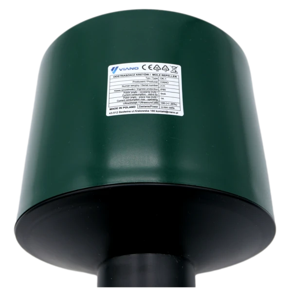 VIANO OK-1 Mole and Vole Repeller is a professional acoustic device of Polish manufacture that effectively protects lawns, gardens and green areas from moles and voles. Coverage area of 1,200 m2, durable Li-ion battery and weatherproof IP65 housing make this a "fit and forget" solution – ideal for managing large areas without constant monitoring.