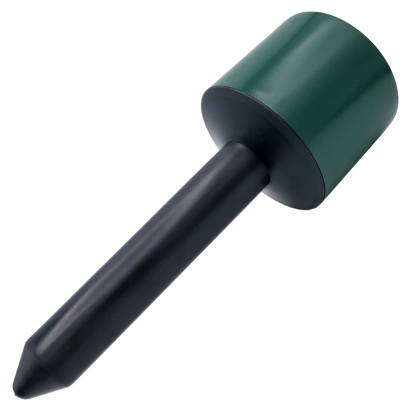 How does the repeller work? The device emits 10-second bursts of intense sounds in the frequency range of 40–15,000 Hz, repeated at 5-minute intervals. Moles and voles, possessing exceptionally sensitive hearing, perceive these signals as highly disturbing – the noise causes discomfort and prevents peaceful foraging, forcing them to leave the protected zone.