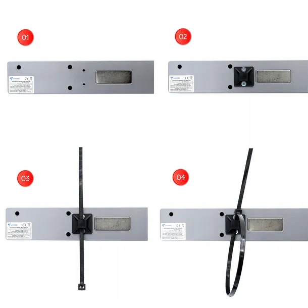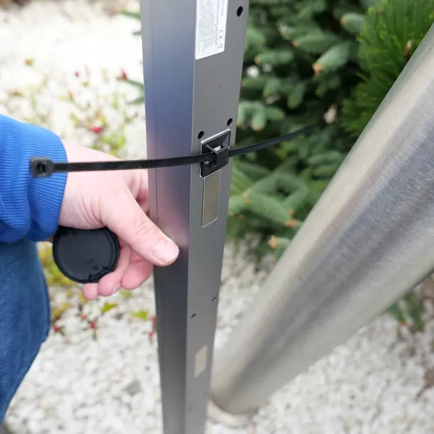 Simple and flexible installation – the device can be mounted in three ways. Three strong neodymium magnets on the rear panel enable instant attachment to metal surfaces such as gutters, roof fittings or shelving. The kit includes metal plates with holes that can be screwed to wooden fascia boards, posts or pergolas, and then the deterrent can be magnetically attached to them. The third option is cable tie adapters, allowing secure mounting to posts, crossbars and gutters.
