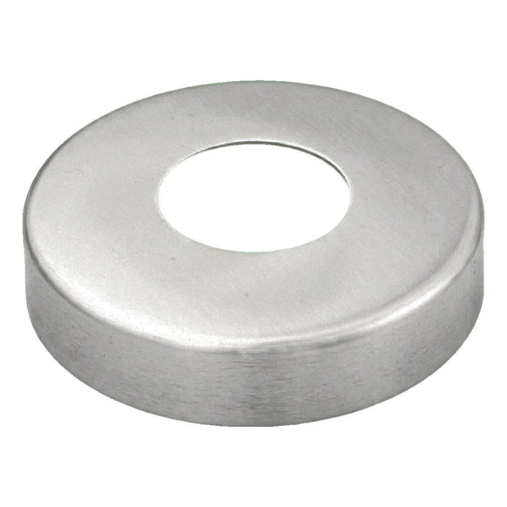 The cover is made from AISI 304 stainless steel with satin (brushed) finish, which guarantees high corrosion resistance and visual consistency with other balustrade elements. Wall thickness of 1.5 mm ensures adequate rigidity and durability of the element, whilst providing ease of installation — the rosette is placed directly onto the pipe and pressed against the mounting surface.