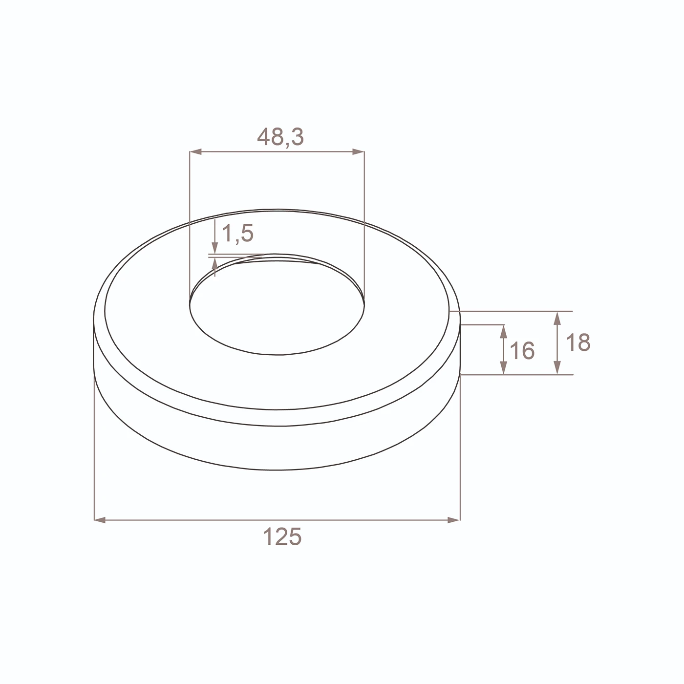 Round masking rosette Ø 125 mm designed for pipe with diameter 48.3 mm — an aesthetic finishing element that covers mounting holes in stainless steel balustrades. Thanks to precise fitting to the 48.3 mm pipe system, it ensures a professional, clean appearance of every balustrade construction.