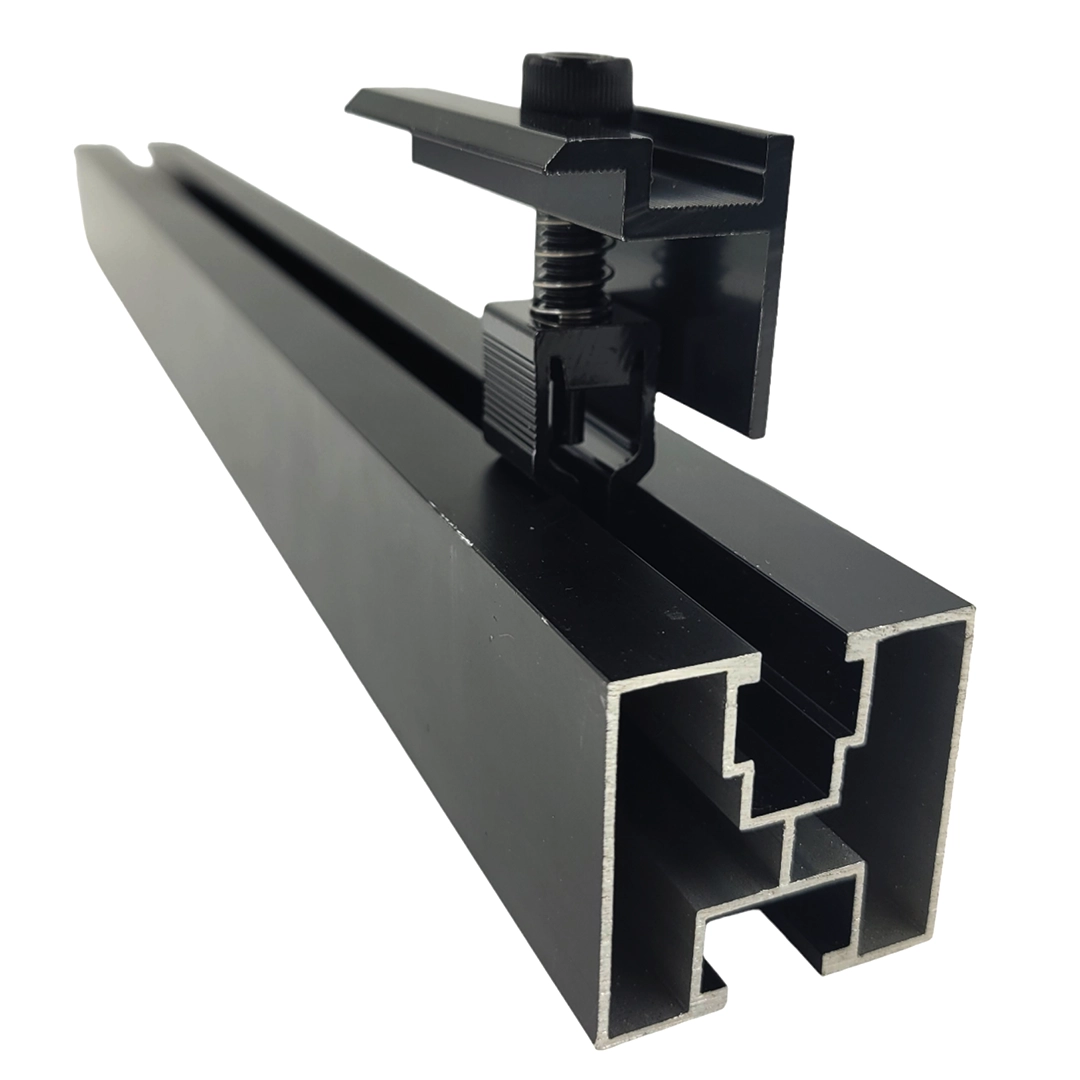 The KLIK system enables fast installation — the clip is inserted into the profile groove at any position. Tightening the bolt expands the clip and presses the panel firmly against the profile. The serrated underside of the clamp grips the frame, preventing the module from shifting.