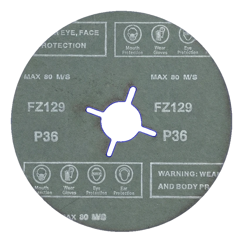 When working with the fibre disc, full protective equipment must be used: eye and face protection, protective gloves, hearing protection and respiratory protection. Before starting grinding, ensure that the grinder speed does not exceed the permissible peripheral speed of the disc.