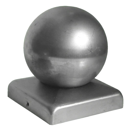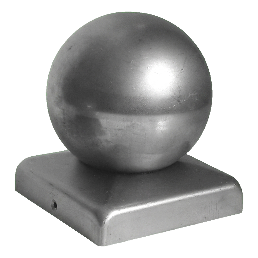 Steel fence cap 100×100 mm with decorative ball ø 80 – galvanised