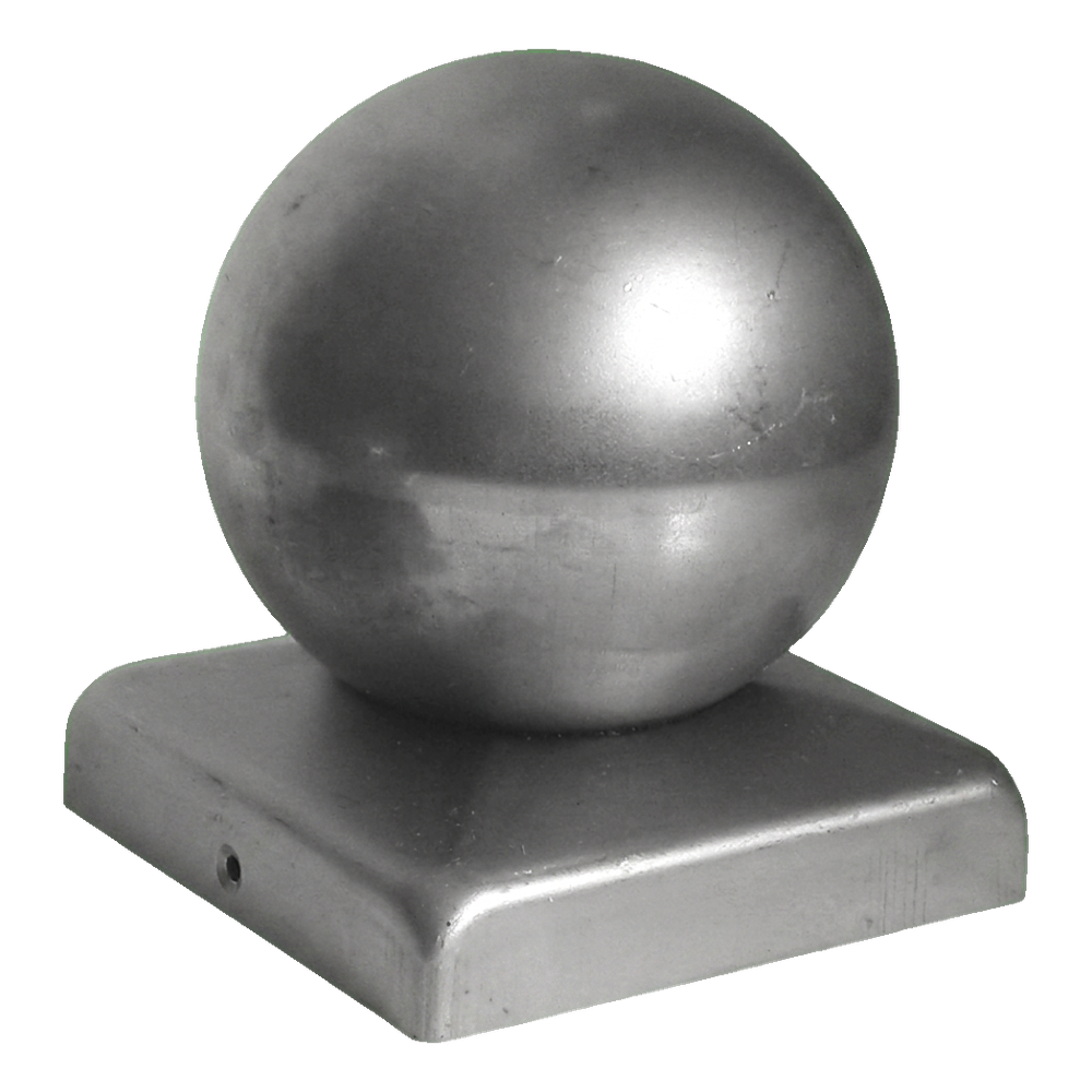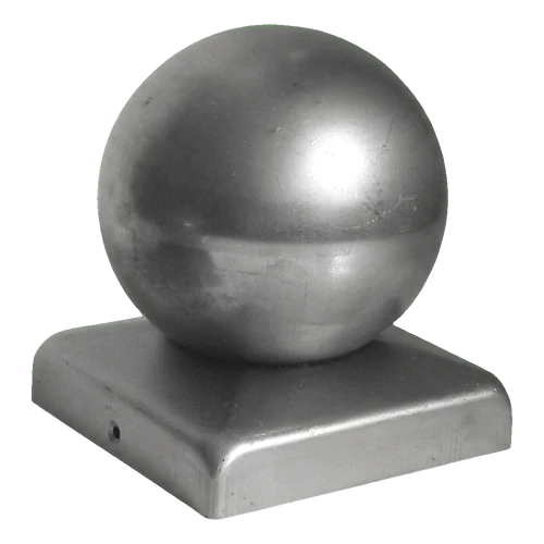 Steel fence cap with decorative ball designed for finishing square section posts 60×60 mm. The decorative ball with diameter fi 80 mm gives the fence an aesthetic, elegant appearance, whilst protecting the post from adverse weather conditions — rain, snow and moisture.