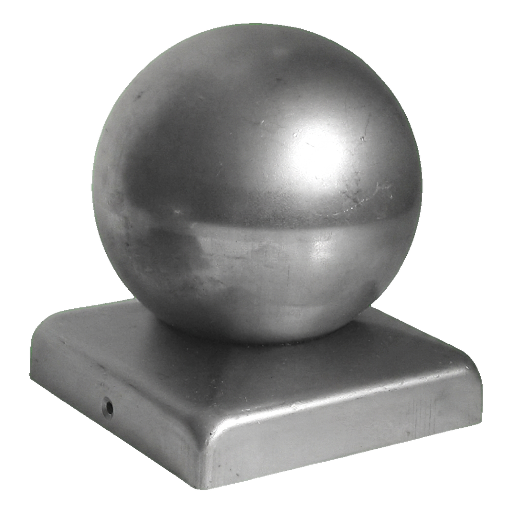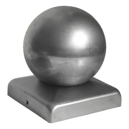 Steel fence post cap with decorative ball — aesthetic and durable fence finishing. Base with dimensions 70×70 mm fits perfectly on standard square posts, and galvanised surface provides years of corrosion protection without the need for additional painting.