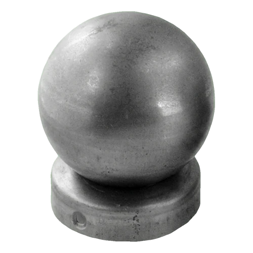 Steel fence cap with decorative ball designed for installation on round posts with diameter Ø 77 mm. The elegant ball with diameter Ø 80 mm gives the fence an aesthetic finish, whilst protecting the post from adverse weather conditions — rain, snow and moisture, which accelerate corrosion.