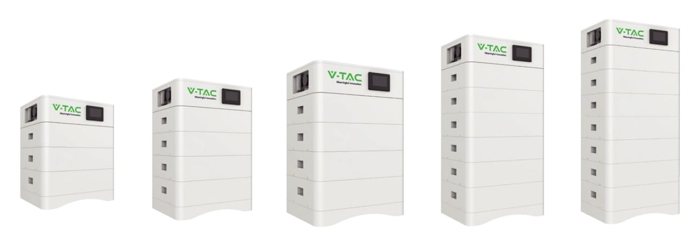 The V-TAC storage kit is an advanced system consisting of 4 LiFePO4 modules with a total capacity of 20.48 kWh (16.38 kWh usable). Operating at 204.8 V, it offers a modular design for stacking, an integrated BMS and a base and control box. Ideal for flexible energy storage in domestic and commercial installations.