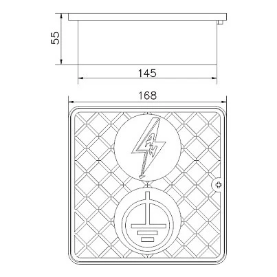 The box is designed for surface mounting on a wall. Its compact external dimensions (168 × 145 × 55 mm) allow for discreet installation on the building facade. The interior accommodates an inspection clamp or down-conductor connection.