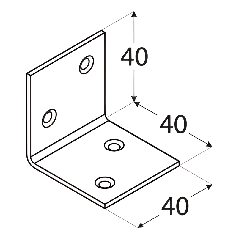 With equal arms measuring 40×40×40 mm, this angle bracket is ideal wherever a solid, perpendicular connection between timber elements is required. The range of widths available within the series allows you to select the right connector for both narrow and wide board edges and furniture panels.